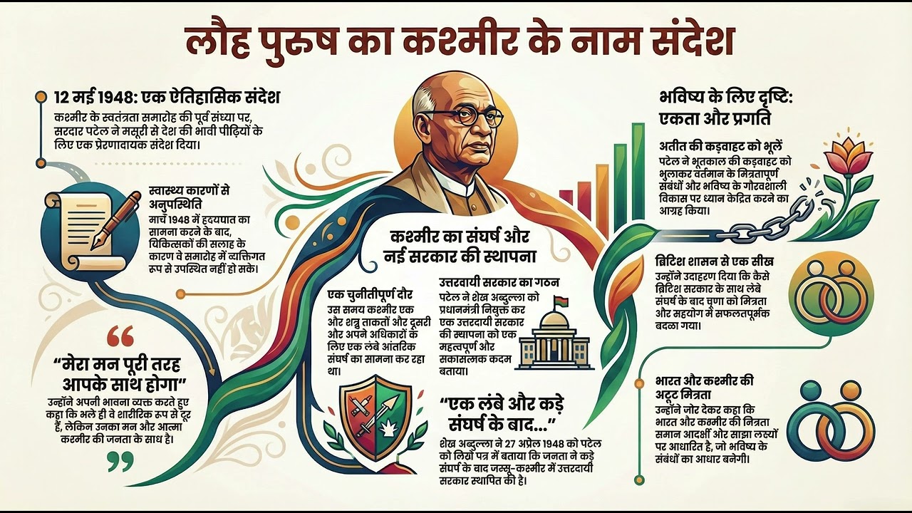 सरदार पटेल का यह संदेश न केवल एक ऐतिहासिक दस्तावेज है, बल्कि यह आज भी हमें एकता और अखंडता की सीख देता है। यदि आप भारत के इतिहास और कश्मीर मुद्दे की गहराई को समझना चाहते हैं, तो यह वीडियो आपके लिए है।