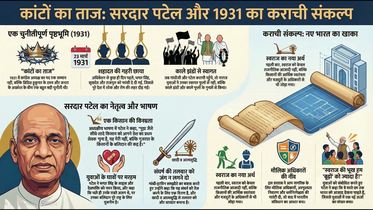 આપણે ૧૯૩૧ ના કરાંચી અધિવેશનની એ રોમાંચક અને હૃદયસ્પર્શી વાત કરતાં જાણીશું, કે સરદારે કઈ રીતે યુવાનોના રોષને દેશભક્તિની શક્તિમાં બદલ્યો.