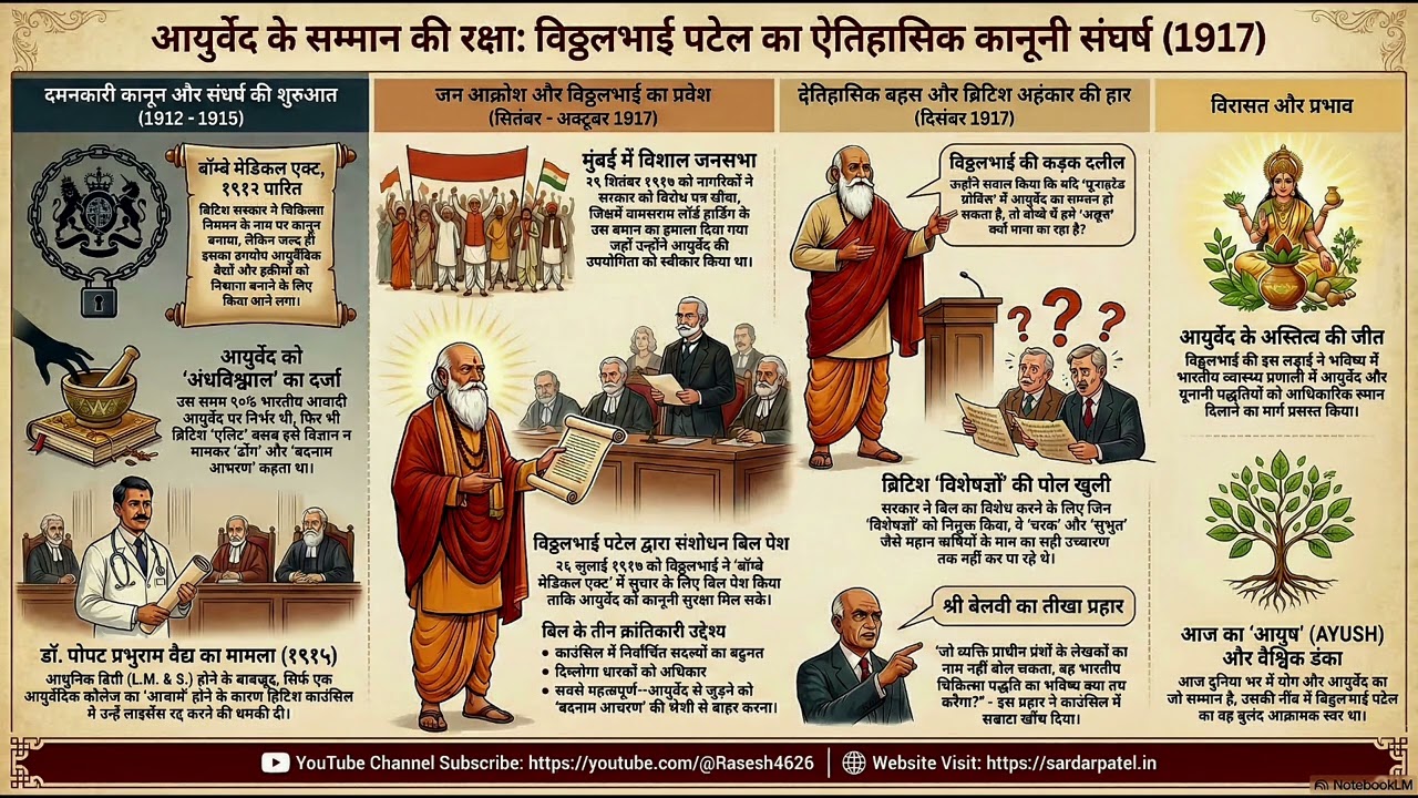 આજે, ૨૦મી સદીની શરૂઆતની એક એવી જ રોમાંચક, તથ્યપૂર્ણ અને અત્યંત મહત્વપૂર્ણ કાનૂની અને વૈચારિક લડાઈ હતી આપણી હજારો વર્ષ જૂની પ્રાચીન ચિકિત્સા પદ્ધતિ — આયુર્વેદ અને યુનાની — ના અસ્તિત્વ અને આદરને બચાવવાની. આ લડાઈ હતી પશ્ચિમી ડૉક્ટરોના એકાધિકાર અને અહંકાર સામેની. અને આ લડાઈના મહાનાયક હતા ગુજરાતના પનોતા પુત્ર, સરદાર વલ્લભભાઈ પટેલના મોટા ભાઈ અને પ્રખર ધારાશાસ્ત્રી — શ્રી વિઠ્ઠલભાઈ પટેલ.