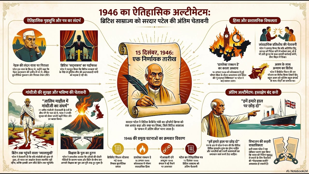 ઇતિહાસના પાનાઓ ઘણીવાર મોટી લડાઈઓ, આંદોલનો અને રાજકીય ઘોષણાઓથી ભરેલા હોય છે. પરંતુ ક્યારેક, ઇતિહાસની દિશા માત્ર એક કાગળના ટુકડા અને તેના પર લખાયેલી સ્યાહીથી બદલાઈ જતી હોય છે. આવો જ એક ઐતિહાસિક અને અત્યંત નિર્ણાયક પત્ર ૧૫ ડિસેમ્બર, ૧૯૪૬ ના રોજ ભારતના ભવિષ્યના 'લોખંડી પુરુષ' સરદાર વલ્લભભાઈ પટેલ દ્વારા બ્રિટિશ કેબિનેટ મંત્રી સર સ્ટેફોર્ડ ક્રિપ્સને લખવામાં આવ્યો હતો. આ પત્ર માત્ર બે નેતાઓ વચ્ચેનો ઔપચારિક પત્રવ્યવહાર ન હતો; તે વાસ્તવમાં બ્રિટિશ સામ્રાજ્યવાદના કફનમાં ઠોકાયેલી છેલ્લી ખીલી સમાન હતો. આ લેખમાં આપણે એ ઊંડા માનવીય અને રાજકીય કારણોની ચર્ચા કરીશું જેણે સરદાર પટેલને આટલી કડક અને સ્પષ્ટ ભાષામાં ચેતવણી આપવા મજબૂર કર્યા, અને સમજીશું કે કેવી રીતે આ એક પત્રે આધુનિક ભારતના નિર્માણ અને અંતિમ વિભાજન ની ભૂમિકા બાંધી.
