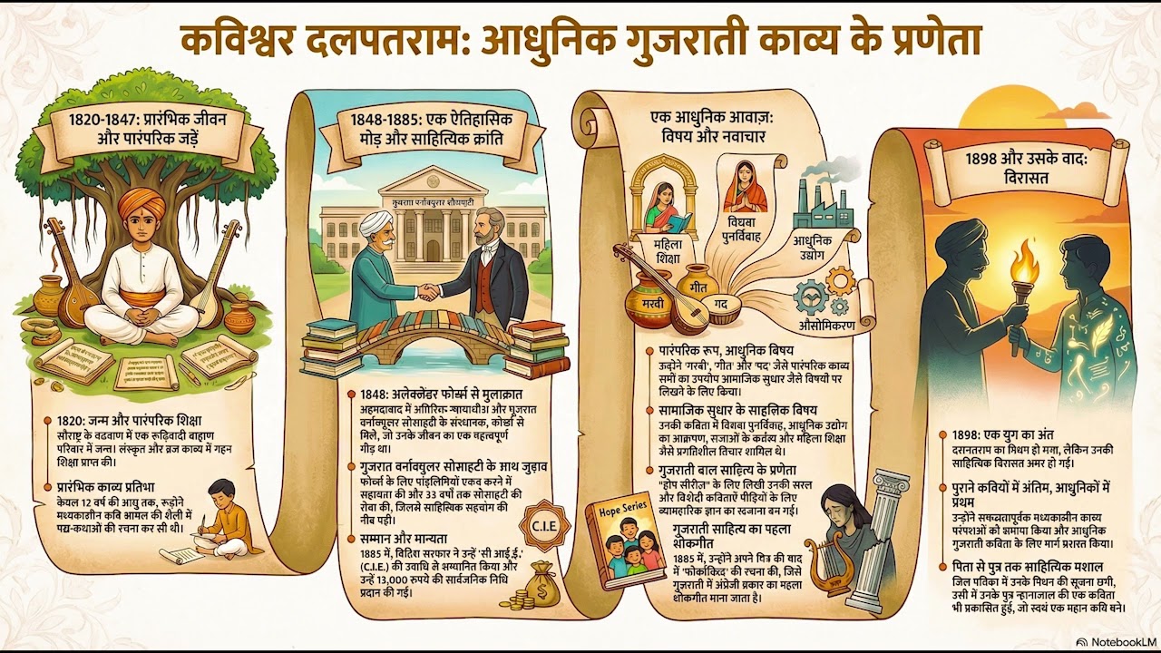 Swaraj - 26 - Kavi Dalpatram Watch on YouTube બે યુગ વચ્ચેનો સેતુ: કવિ દલપતરામનું જીવન (૧૮૨૦–૧૮૯૮) ભારતીય સાહિત્યના ઈતિહાસમાં અમુક વ્યક્તિત્વ એવા વિરા